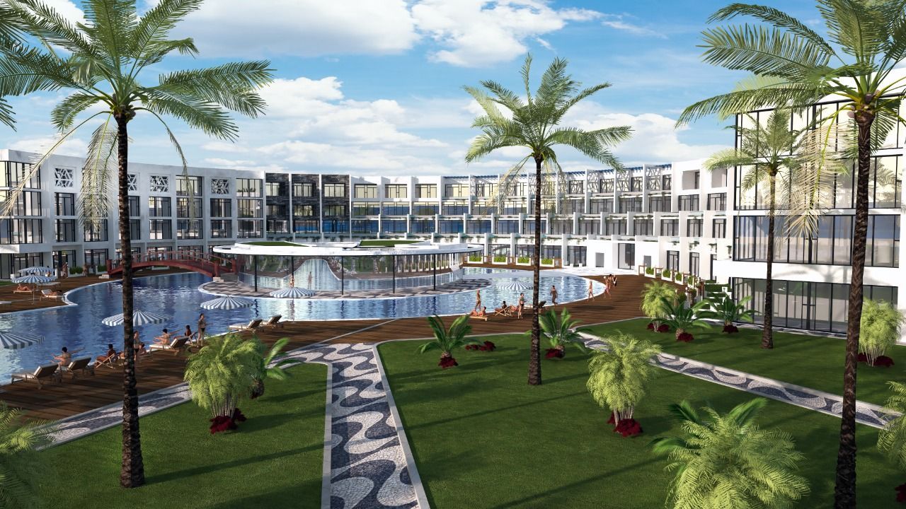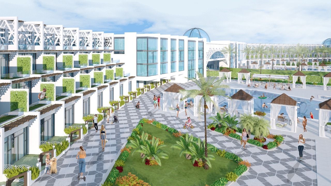 - Services: lakes, children’s play area, shopping centers, hotels, cafes and restaurants, gym, theater, diving center, marina, water park, sports fields, sandy beach, sea paths, private rest areas, yoga area, playgrounds, and water activities. .